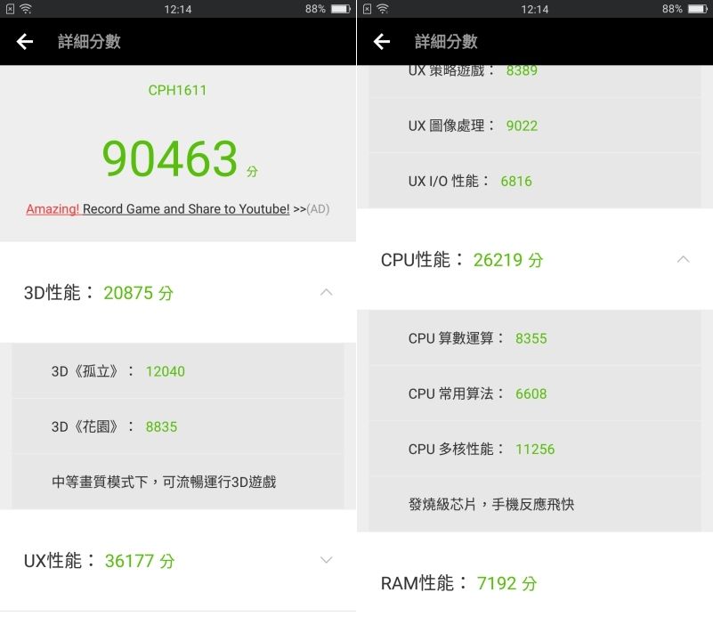 不免俗的阿湯也提供各項具指標的評測軟體測試數據給大家。 安兔兔獲得總分 90463。