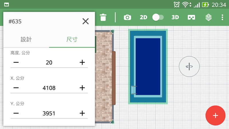 加個室外游泳池好了,但好像太大,一樣可以點選來調整尺寸。