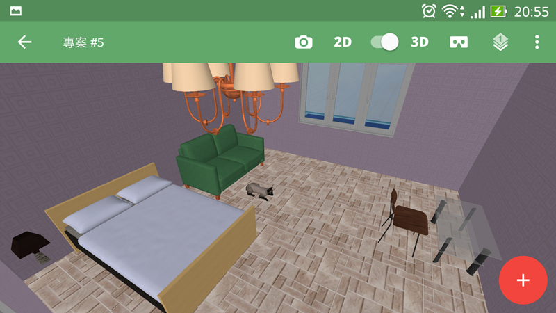 馬上從 2D 變身 3D 顯示,整間房子瞬間立體起來,可以清楚看到壁紙的花色。