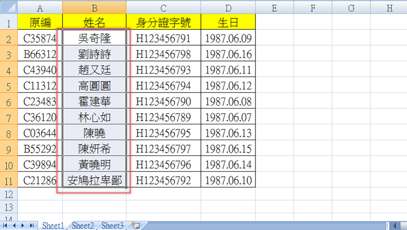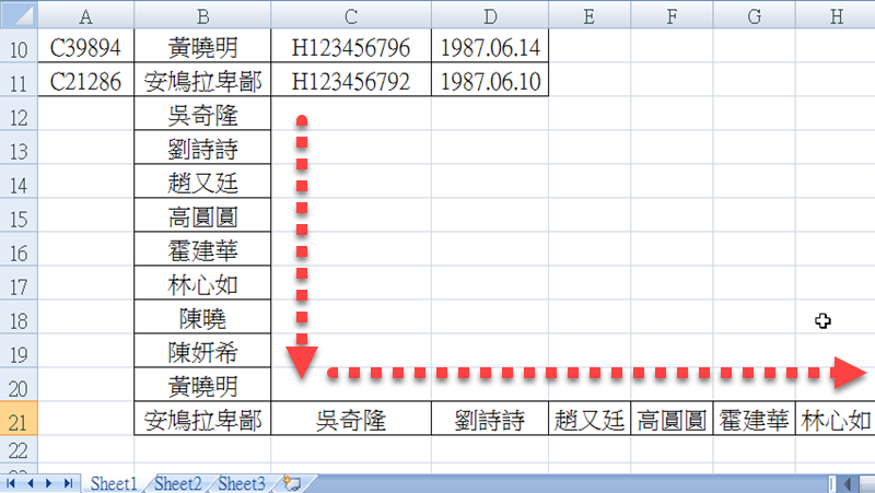按滑鼠左鍵黑色「+」,不管往下拉、往右拉,只要有碰到排序中的這些人名,通通會乖乖排好,以後處理這些同仁的任何 Excel 檔都不用擔心排序的問題。
