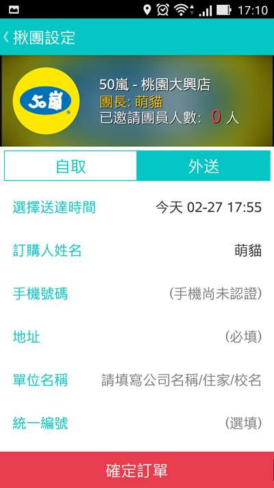 接著邀請朋友一起點,前面如果已經有加群組好友就會在這邊顯示,將訂單分享給他們會跳出通知,打開後就可以點了。