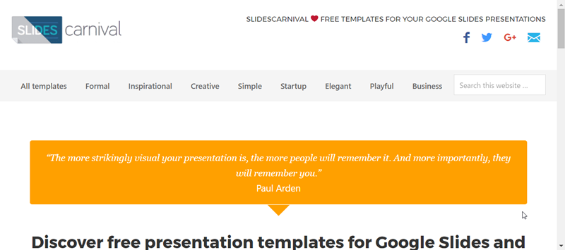 這個網站的模板主要設計給 Google 投影片,但可以當作 PPT 模板下載,以主題分類,有正式、簡單、創意、優雅、商業等,整個網站都是免費的。