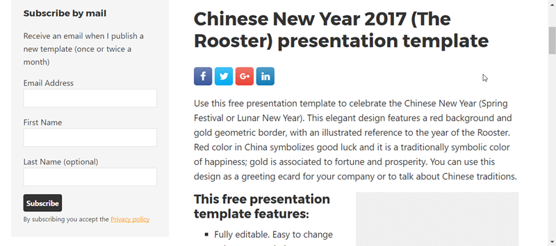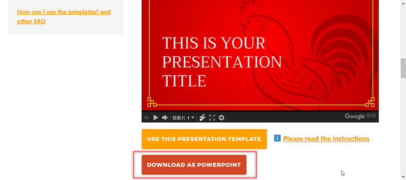 阿湯從首頁最新的模板中挑一個農曆新年的來看看,簡介中有作者的設計靈感、內容樣式介紹等等,預設尺寸是 16:9 但下載後可改成 4:3。