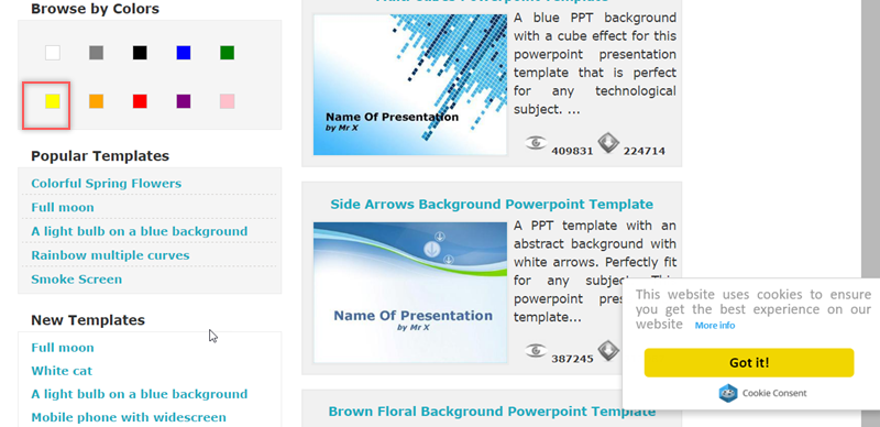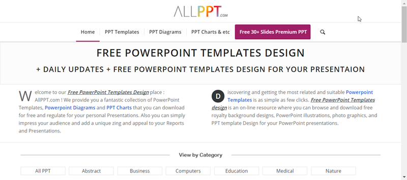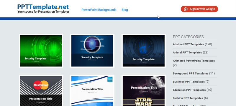 這個網站很單純都是 PPT 模板,右邊主題分類也很清楚,基本工作生活會用到的類型都有,但總數不多大概不到 500 種。