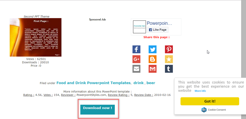 然後找到這個黃澄澄的啤酒模板來下載,圖片下方可以看到下載人數還蠻多的,喜歡的話還可以分享到社群網站給朋友。