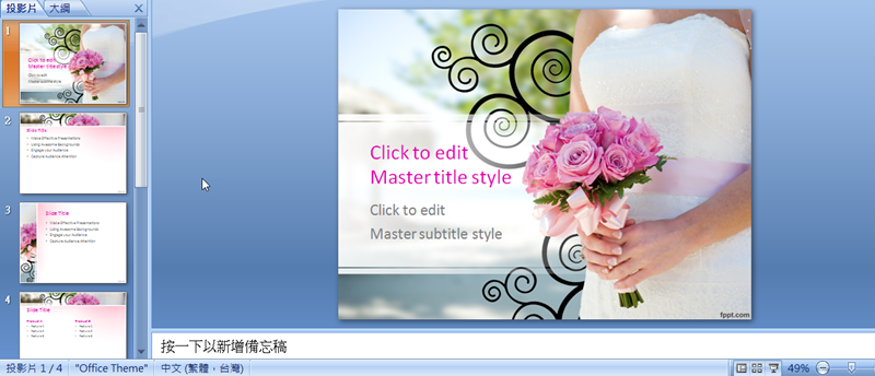 模版內容總共四張,圖片和內文編排設計稍稍不同,可能檔案夠大的關係,畫質蠻清晰的,又很明亮,完全是幸福婚禮感。