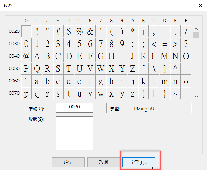 打開之後,隨便點一個空格當作字碼,然後確定。