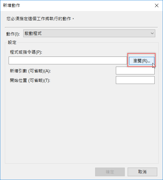 在「程式或指定碼」空白處點「瀏覽」,找到一開始要大家下載並解壓縮的檔案。