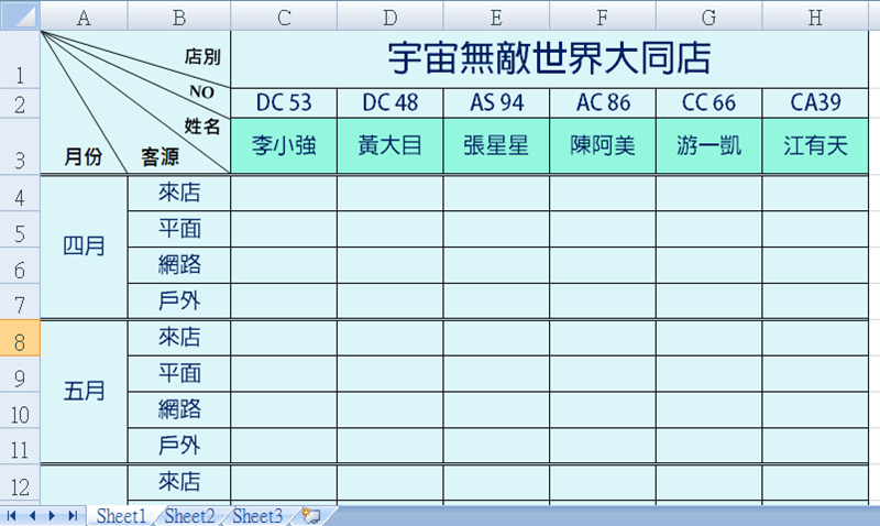 在使用 Excel 製作表格的時候,如果自己或老闆不怎麼要求表頭那一格,那就讓它空白也沒差,反正內容看得懂就好,但通常還是會編輯一下吧(阿湯絕對不會說自己都空白),一般簡單的表格多半只有兩欄還算好處理,但碰到兩欄以上的複雜表格,步驟就比較多一點,可能有人還不知道這種表頭要用什麼來畫、怎樣弄比較好看,今天阿湯就針對超過兩欄的表格,來教大家怎麼手動畫斜線。
