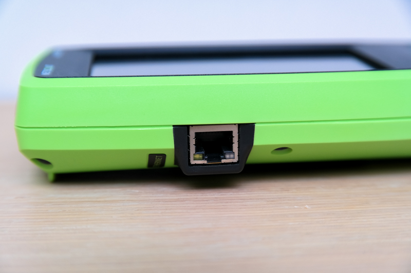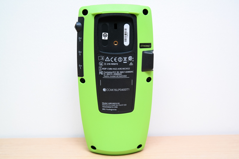 另一邊有乙太網路孔,可以透過接上乙太網路一併檢測乙太網路的可用性,另外也可以透過有線網路接上後直接使用電腦透過 VNC 軟體進行遠端桌面操作,在電腦上用滑鼠就能夠操作 AirCheck G2。