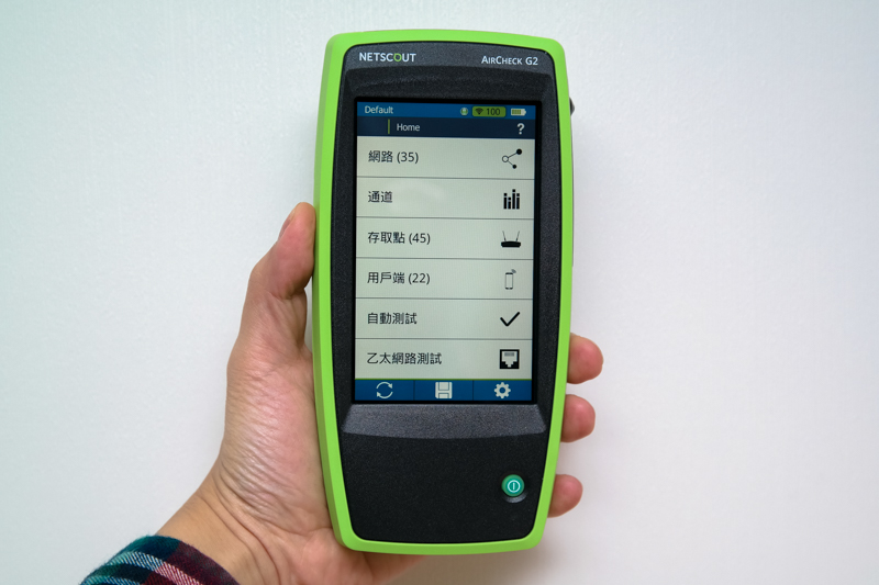 像一般家用的無線網路,由於範圍小通常只需要一台無線 AP 就可以搞定全範圍,但對於企業來說,如果有分樓層、分區域,範圍很大的狀況下,就會需要使用數台甚至數十台以上無線 AP 來架設無線基地台,就非常需要考量到上面阿湯所提到的一些狀況,太多 IT 人員就是僅單純的架設,沒有針對這些可能的干擾的狀況去配置,才會導致 Wi-Fi 的各種問題產生,下面我們就來實際使用 AirCheck G2 Wi-Fi 測試儀,讓大家了解這款儀器究竟能夠做什麼樣的檢測,以及使用方式到底有多簡單,真的是企業 IT 人員的好幫手,避免老闆和主管不斷的呼叫你啊。