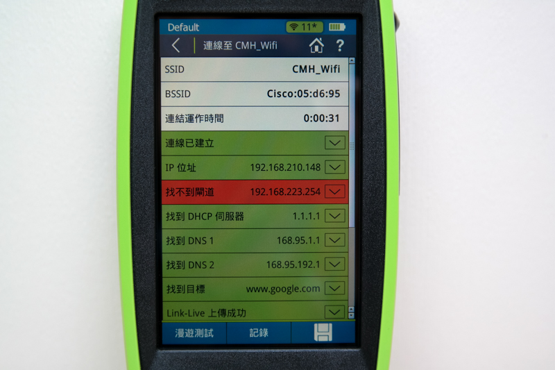 如果要針對該 IP 進行漫遊測試的話,就需要連上這台 IP,連線方式就和一般手機或電腦連 Wi-Fi 一樣,只要輸入密碼就可以了,就可以進行漫遊測試或將該 AP 的記錄儲存下來,方便事後觀看。