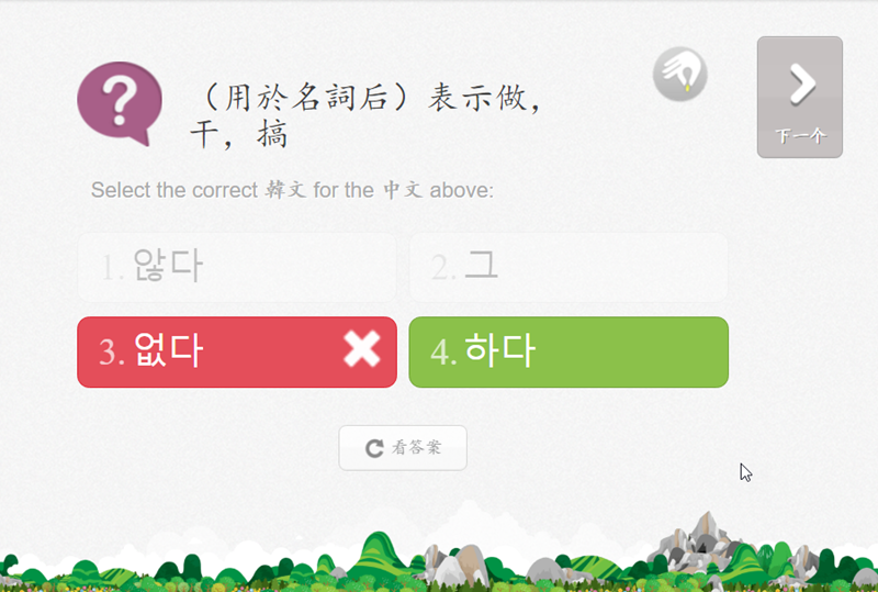 跟著步驟學習,可能下一步突然就出現測驗,要求限時答出,如果答錯,會跳回去正確答案那個單字頁讓你再學一遍。