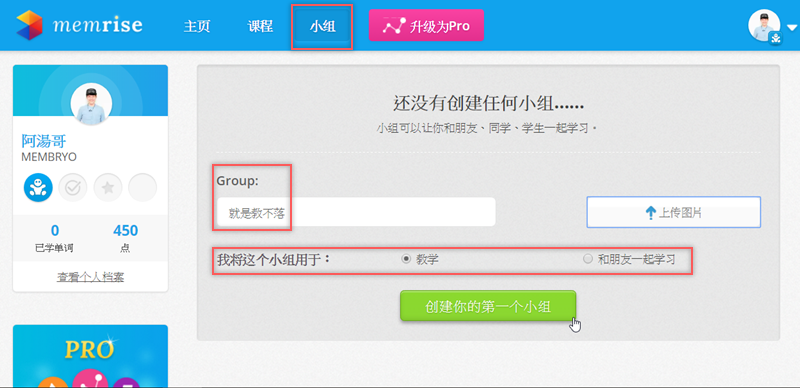 從上排「小組」的地方可以自創教學,或是和朋友一起學習的小組。