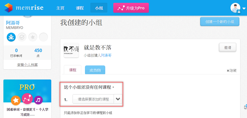 創立小組後就可以添加課程和邀請朋友了,如果沒有想加入的課程,就自己來開一門。