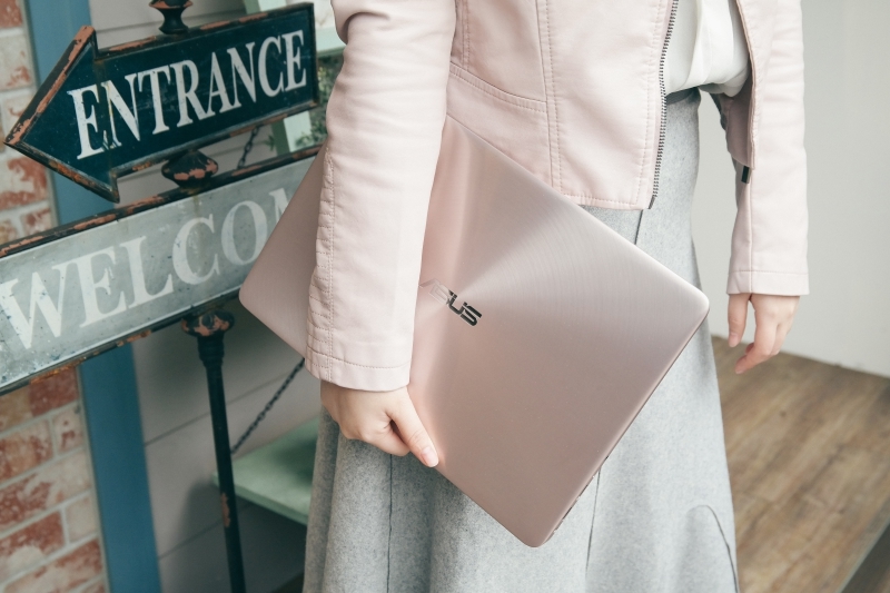 先前在網路逛筆電的時候,老婆也在一旁看了一下,然後問我說,為什麼筆電大部份外觀都脫離不了黑銀白灰居多,覺得一點都顧慮女性的市場,最近就看到華碩推出的 ASUS ZenBook UX410 筆電居然是「玫瑰金」色系,讓她眼睛都為之一亮,再加上這款 ZenBook 僅 13 吋機身大小但螢幕是 14 吋、搭配強而有力的第七代