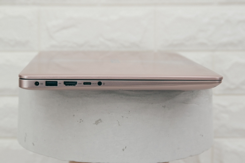 以使用性來說 13~15 吋之間大小的筆電是最常見的,而這款 UX410 不僅色系有玫瑰金,在重量及外型的配置設計上,僅 1.4 公斤、厚度 18.95mm,以這樣的規格及尺吋來說已經算是相當輕薄,對於女性使用者來說,仍然是便於攜帶的重量。