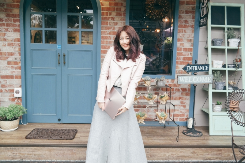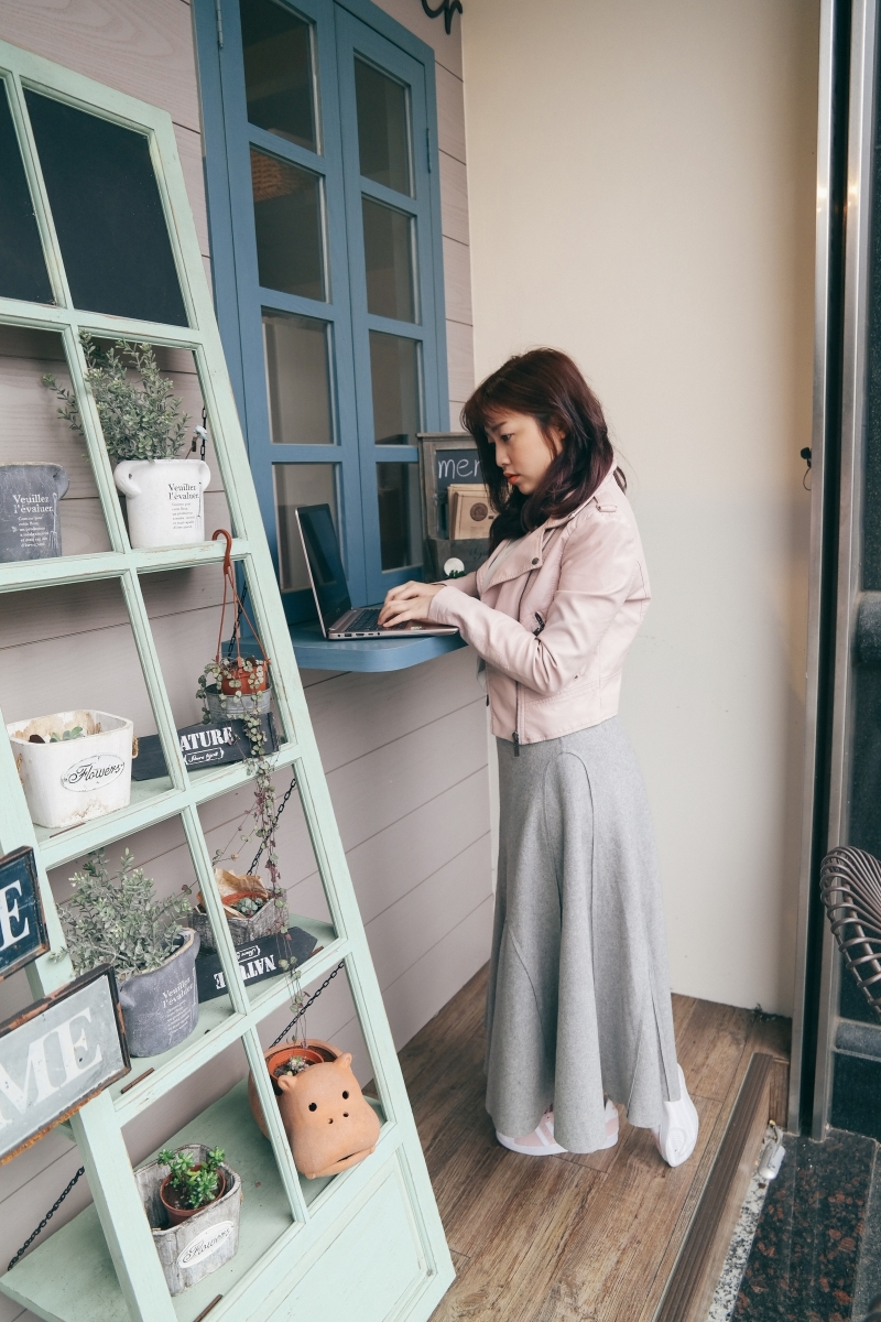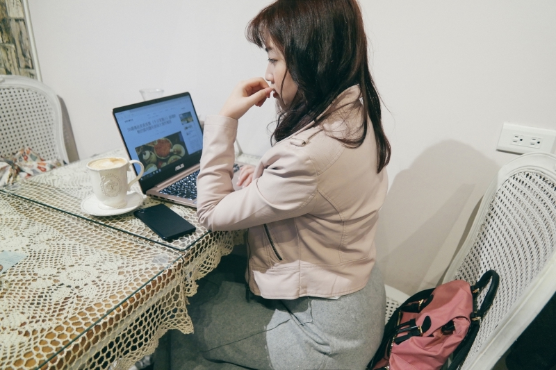 原本是出門打算找間咖啡廳坐下來讓老婆好好的把玩這台筆電,不過假日人爆滿啊,就連在等待的時間,她已經迫不及待的拿出來在窗台上就使用了起來(但其實她只想展示玫瑰金的厲害啊)。