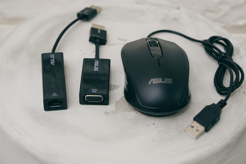 隨機還有附贈 USB3.0 to RJ45 cable + HDMI to VGA cable,以及有線滑鼠,真的是誠意十足。