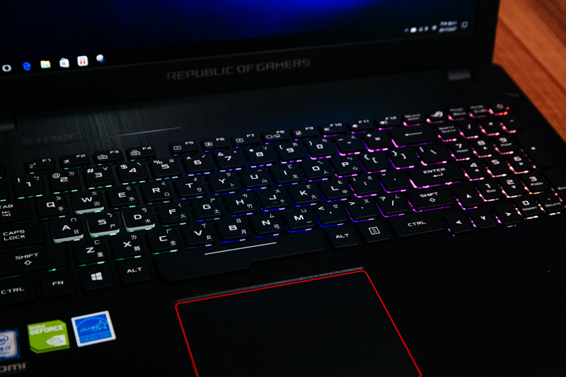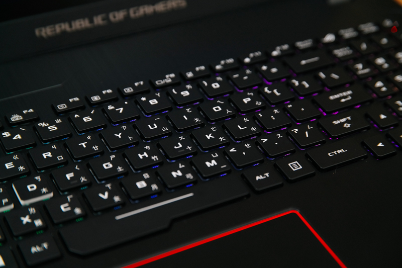 另搭載剪刀腳設計的背光鍵盤,內建獨家Aura RGB全彩燈效,分別設置四個燈光區域,玩家可依個人喜好隨意的自訂背光顏色,讓你在玩遊戲的同時,也能有更棒的聲光效果。