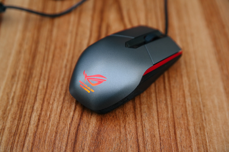 隨機還有附贈這款 ROG SICA 滑鼠,非常好用,除了設計、握感跟使用感受都很棒之外,在後方的 ROG 紅眼 Logo 也有呼吸燈光設計。