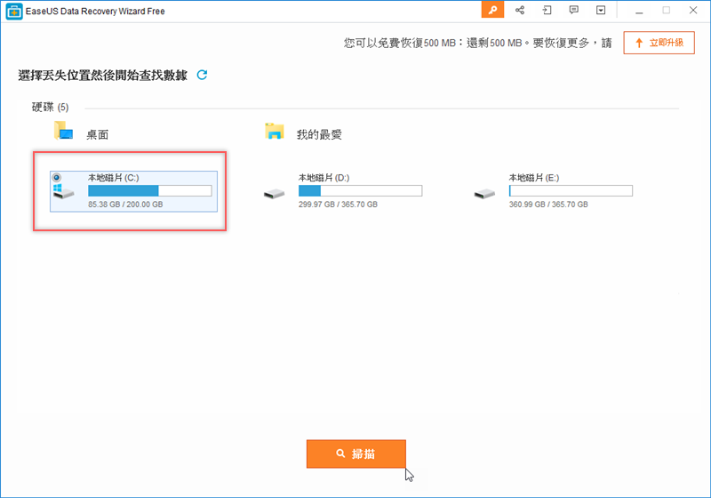安裝開啟後,就按檔案遺失的位置來掃描吧,假設是 C 槽。