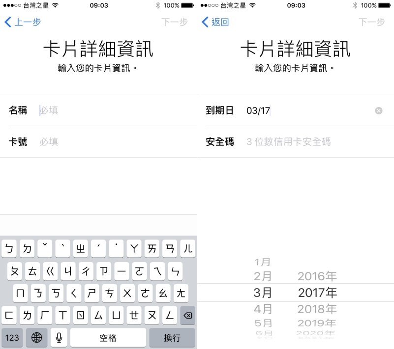 然後按下一步後,就可以進行加入信用卡的動作,大部份的信用卡只要掃描就能自動幫你把卡片資訊加入,但如果掃描沒反應的,就按下方的手動輸入吧。