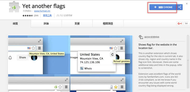 先連結到 Google Chrome 擴充套件頁面,點「加到 Chrome」安裝。