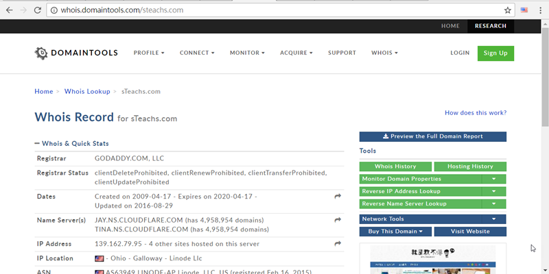 就會連到 Whois 網站看到註冊商、服務器、架站日期等細節。