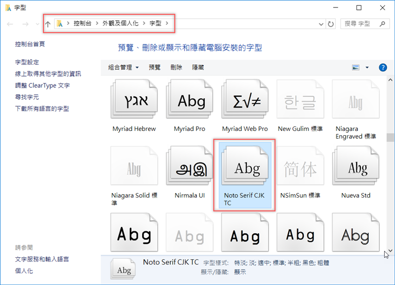 - Noto Serif CJK TC(Google)官網下載:請點我