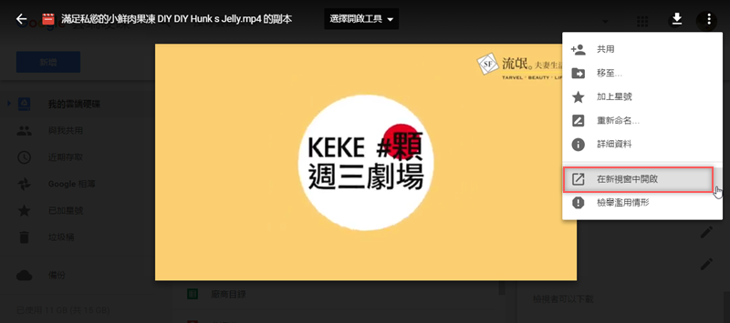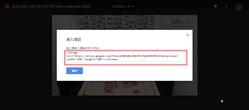 首頁 › 電腦小教室 › 使用「嵌入項目」,將 Google 雲端硬碟裡的影片放進網頁 使用「嵌入項目」,將 Google 雲端硬碟裡的影片放進網頁 發佈日期:2017/4/12 作者:阿湯 分類:電腦小教室 如果要把影片放在自己的部落格,最傳統的做法就是先上傳到 YouTube,再按右鍵「複製嵌入程式碼」貼到網頁,但如果你不想把影片放到 YouTube,其實也可以存在自己的 Google 雲端硬碟,再按「嵌入項目」一樣可以取得 HTML 原始碼將影片放在網頁播放,也可以貼在臉書動態牆發布,比直接上傳影片來發布要快、也比較不會突然故障或消失(被檢舉之類)。 如何取得 Google 雲端硬碟的影片原始碼? 打開雲端硬碟,點兩下進入要設定的影片。 打開右上角清單圖示,選擇「在新視窗中開啟」。 接著就跳到新視窗,同樣點開右上角清單,點擊「嵌入項目」。 跳出的視窗中「貼上要嵌入網站中的 HTML」下面就是影片的原始碼,複製起來愛貼哪裡就貼哪裡,當然只有網頁可以貼啦,試試看吧。