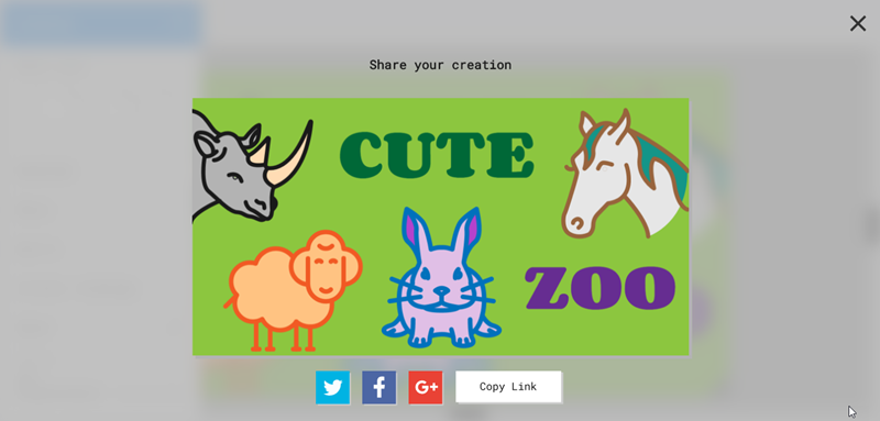 按下面的社群圖示就可分享出去了,或點「Copy Link 」傳給其他人,點連結就能連到這幅可愛動物園了。