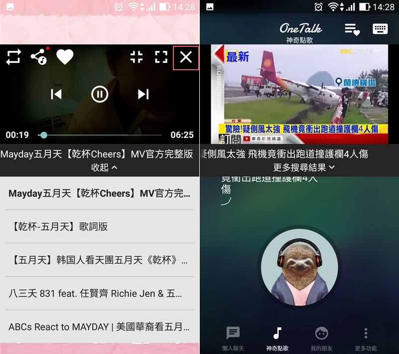 下面點開還能切換到其他搜尋結果,等同音樂播放器,而且當你開其他程式也不用關掉,會一直停留在視窗上,要關閉再點右上角叉叉即可,還可以播新聞,也是一樣說關鍵字,像阿湯說「飛機」就跑出這個新聞。