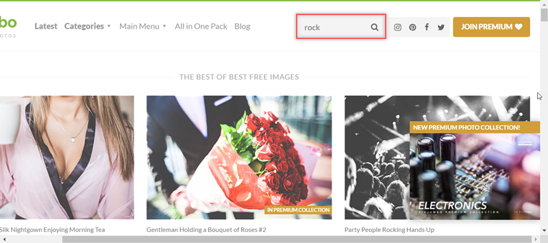 由知名設計師和攝影師在 2013 年創立的網站,首頁可以由主題或發布時間找分類,也可直接輸入關鍵字搜尋,例如搜尋「rock」。