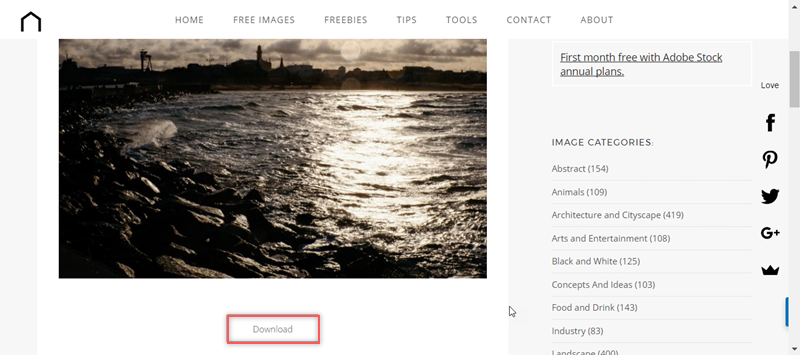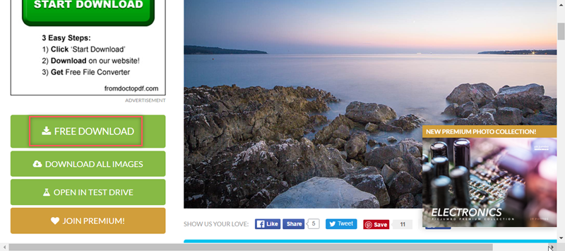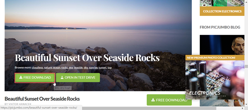 出現的就真的是 rock(岩石),點右下角「FREE DOWNLOAD」或將滑鼠移到圖片上都可以下載。