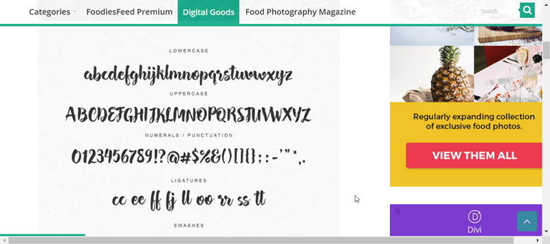 進入「Digital Goods」看看,裡面是跟食物相關的圖標、手機桌布、雜誌模板等,特別的還有字型。