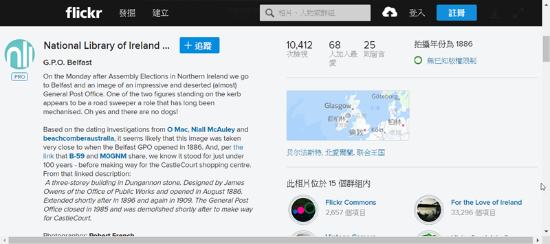 往下滑是關於相片的詳細介紹,說明是 1886 年拍的照片還有位置地圖,十分有歷史感,底下還有網友的討論留言。