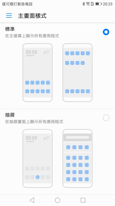主畫面樣式可以依使用習慣自行選擇要用哪一種。