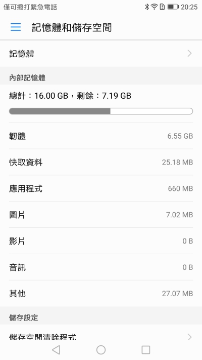 在未安裝任何 APP 情況下,內建的空間約還有 7.2GB 可以使用,一般使用應該是很夠用。