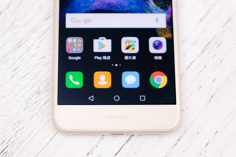 操作按鍵採用虛擬按鍵,最下方為 HUAWEI Logo,雖然是中階機種仍然有搭載指紋辨識器,在後背,往下會介紹到。