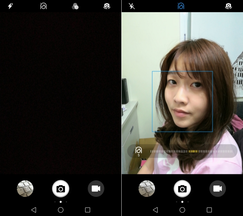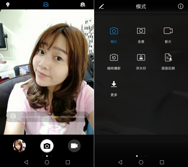 前鏡頭的部份,同樣搭載美顏模式,昏暗狀況下會自動利用螢幕進行補光。