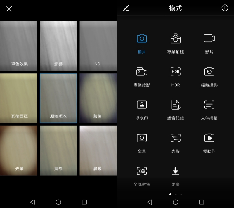 內建有九種濾鏡效果以及各種實用的拍照模式。