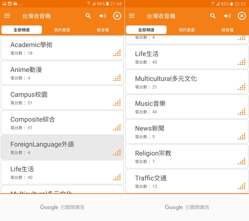 開啟 APP 首頁就是所有頻道,共分學術、動漫、校園、綜合、外語、生活、多元文化、音樂、新聞、宗教、交通共 11 大類,裡面還分細項加起來超過 200 個頻道,你想聽的應該都有。