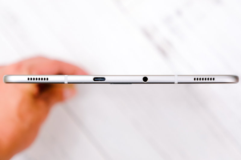 Galaxy Tab S3 採用 USB Type-C 介面並支援快速充電(也是三星有史以來第一台支援快充的平板筆電)以及 3.5mm 標準耳麥孔,阿湯真的要去多買幾條 USB Type-C 的線材了,microUSB 差不多快要被淘汰了吧。