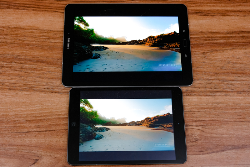 說這麼多,你還是不會知道 Galaxy Tab S3 支援 HDR 影片到底差多少,阿湯立刻去拿了家裡另一款 iPad mini(無支援 HDR)來比較畫面給大家看,同時播放同一個 HDR 影片,相信不需要阿湯多說了吧,很明顯就可以看出來是 Galaxy Tab S3 的畫面漂亮許多,不僅有更細緻的細節,就連色彩也更加豐富,特別是陰影處呈現的更棒。