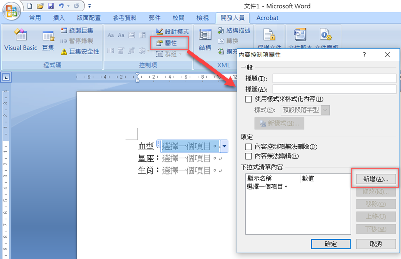 然後點「屬性」,新增清單內容。