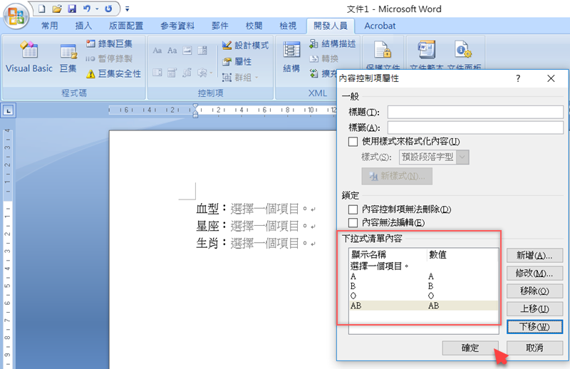 有多少選項就新增多少,可以視情況移動或修改,OK 就按確定。