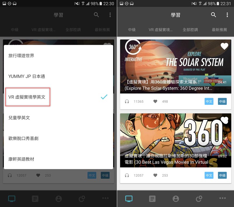 來個特別的,看看「VR 虛擬實境學英文」這個頻道有什麼。