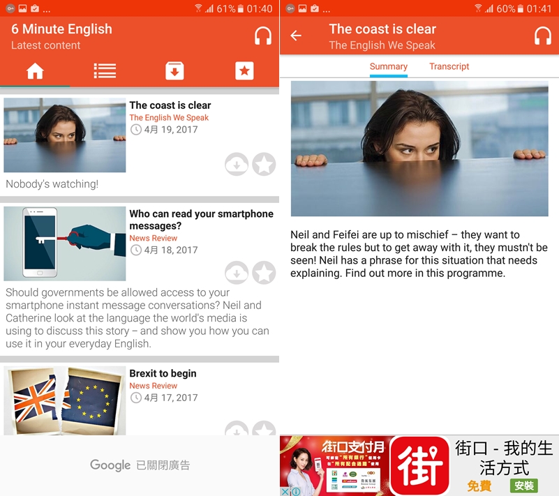 這個 APP 其實也是以 BBC NEWS 的內容為主,讓你用短短幾分鐘學單字和文法,適合忙碌的上班族,隨便點一個單元進入,會先出現大綱。