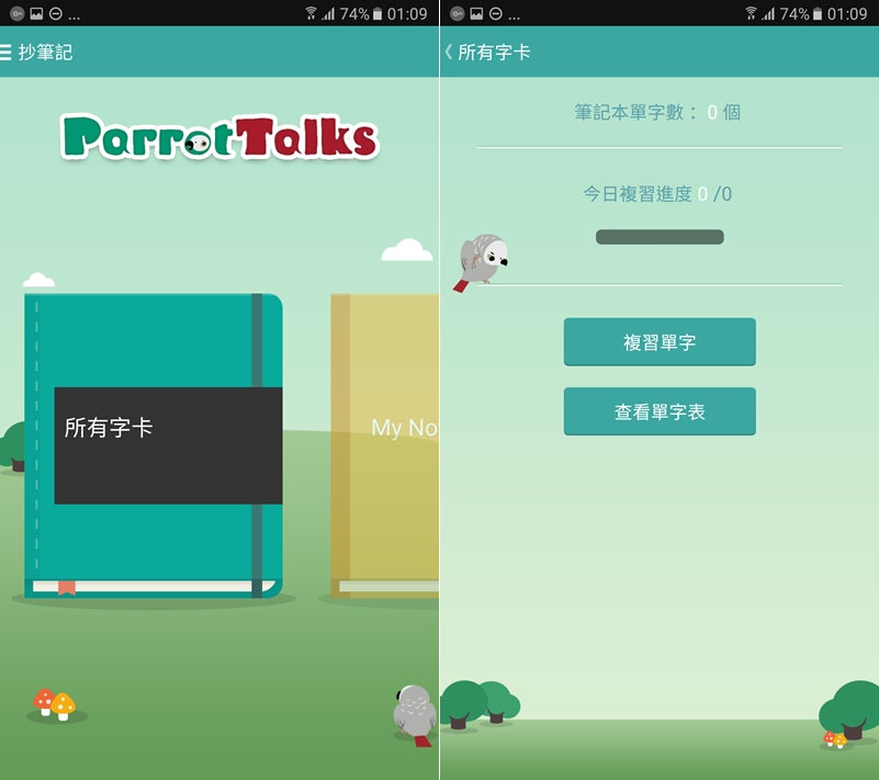 這是以字卡方式來學單字,如果沒用過,進來點「所有字卡」會是空白的。